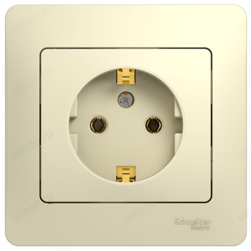 Розетка с заземлением SE Glossa, в сборе с рамкой, беж