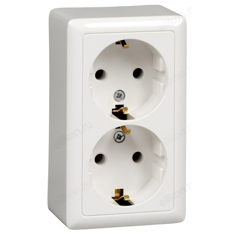 Розетка наружная 2-ая с/з, без шторок SE Wessen ХИТ 16А, 250В, изолир. пластина, белая