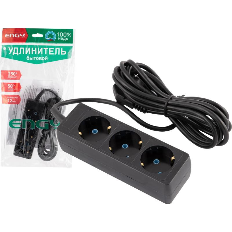 Удлинитель Engy 'Гранд' 3м/3роз с заземлением (ПВС 3х0.75) черный ENERGY 186738
