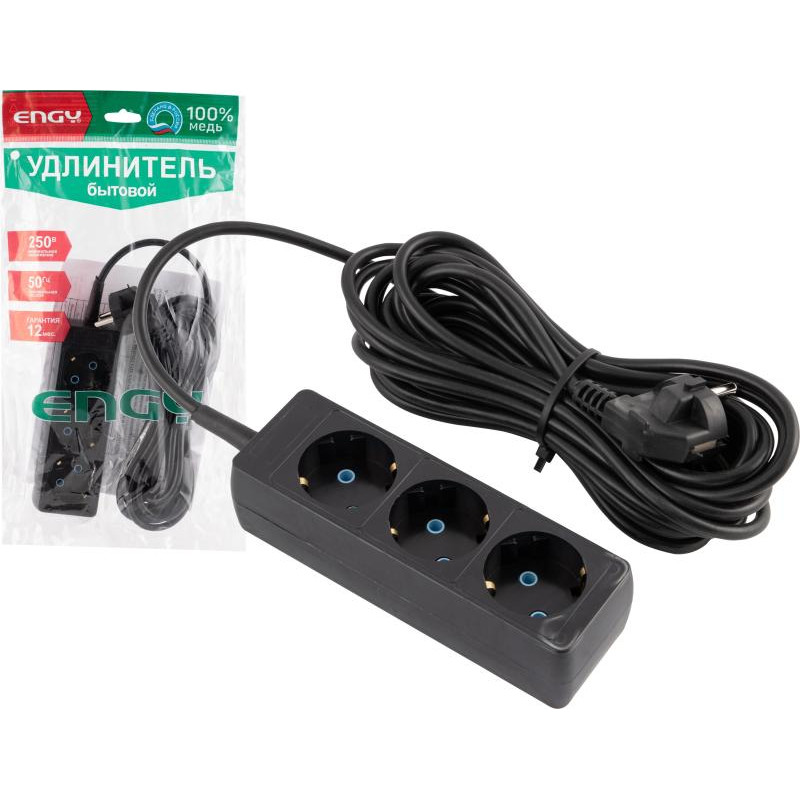 Удлинитель Engy 'Гранд' 7м/3роз с заземлением (ПВС 3х0.75) черный ENERGY 186740