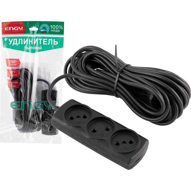 Удлинитель Engy 'Премиум' 10м/3роз (ПВС 2х0.75) черный ENERGY 186742