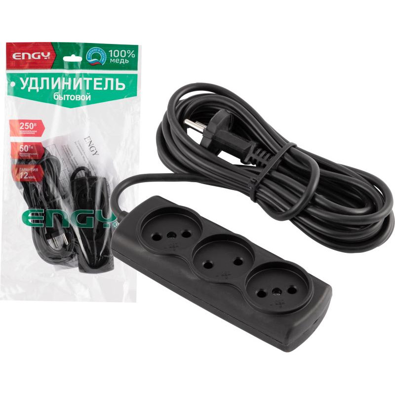 Удлинитель Engy 'Премиум' 5м/3роз (ПВС 2х0.75) черный ENERGY 186744