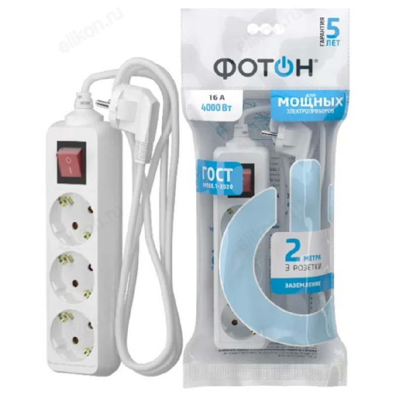 Удлинитель Фотон 16-23ЕS 3гн /2м 24751 белый