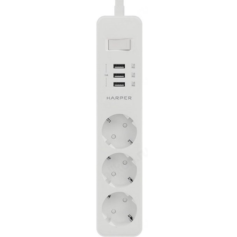 Удлинитель с USB зарядкой HARPER UCH-325 3гн+3USB, 3м. White