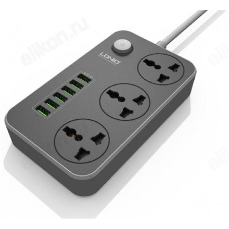 Фильтр сетевой LDNIO SC3604 2м 6 USB + 3 комбо - розетки, Gray