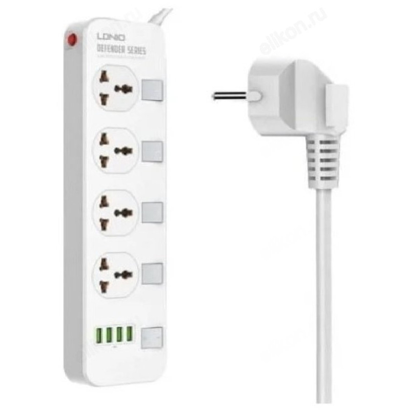 Фильтр сетевой LDNIO SC4408 2м 4 розетки EU_UK_US/ 2500W/ 4 USB/ Выключатели на розетке/ White