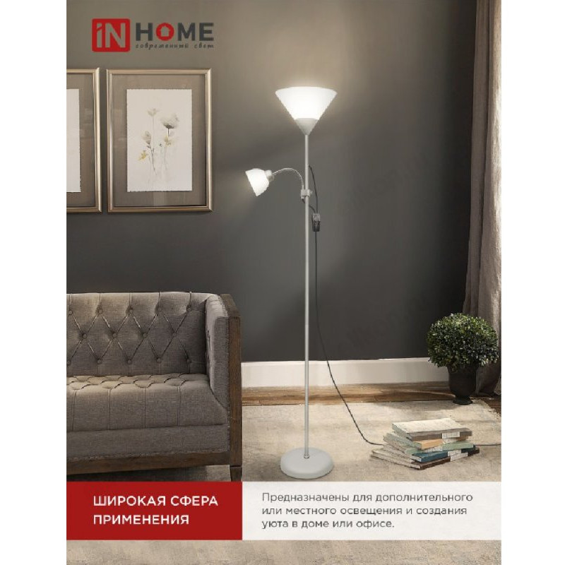 Светильник напольный IN HOME ТНО 02С СЕРЕБРО 60Вт Е27/Е14 230В