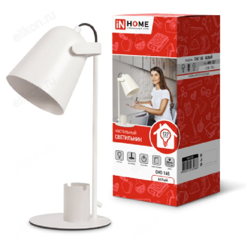 Светильник настольный СНО 16Б 40Вт E27 230В с органайзером, белый IN HOME