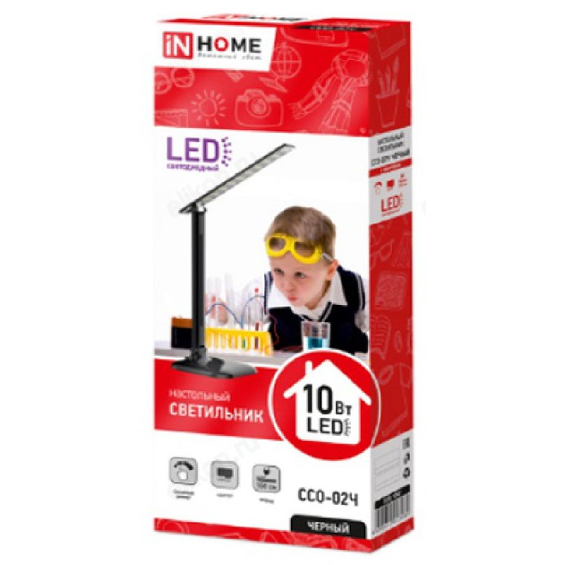 Светильник настольный светодиодный ССО 02Ч 10Вт 4000К 625лм сенсор-диммер, черный IN HOME