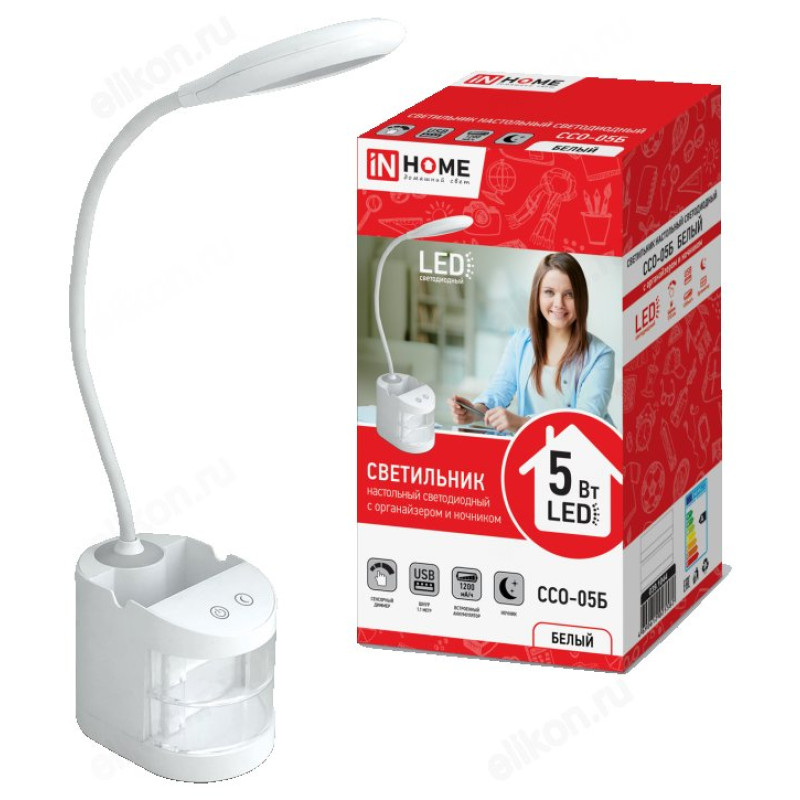 Светильник настольный светодиодный ССО-05Б 5Вт сенсор-диммер, органайзер, USB БЕЛЫЙ IN HOME