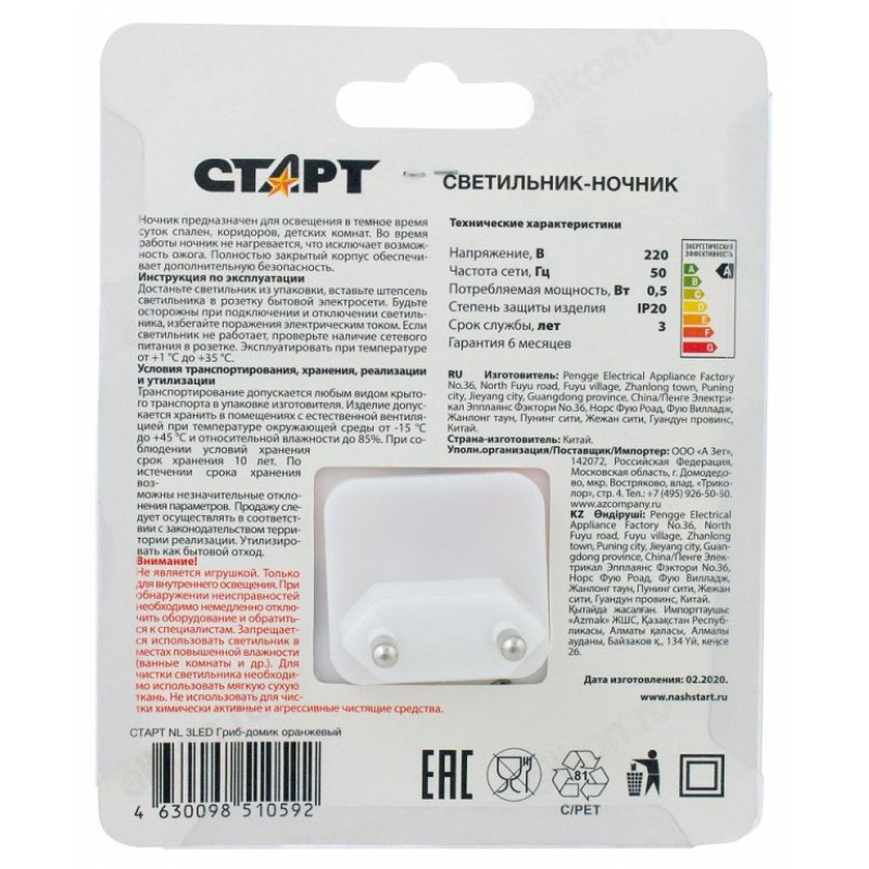 Ночник Старт NL 3LED (Гриб-домик оранжевый)