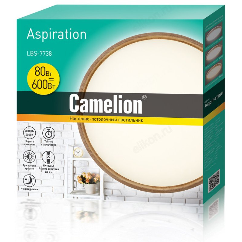 Светильник светодиодный Camelion LBS-7738 80 Вт.,3000-6000К,7800лм, пульт, 500 мм 14532