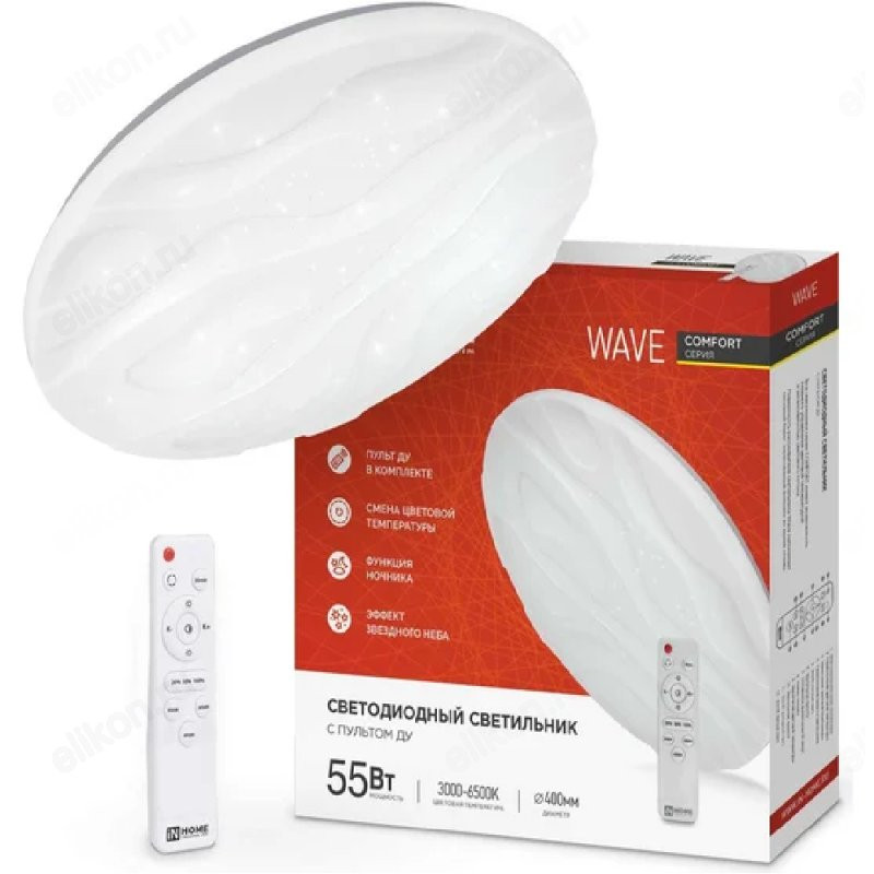 Светильник светодиодный COMFORT WAVE 55Вт 230В 3000-6500K 4400Лм 400x70мм с пультом ДУ IN HOME
