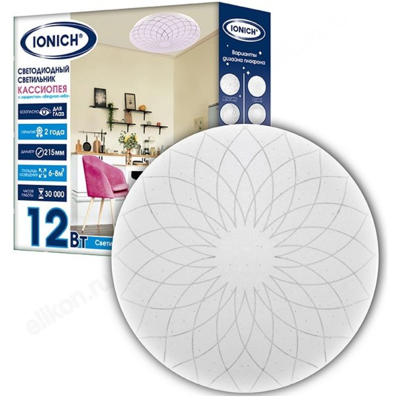 Светильник светодиодный ТМ IONICH 2217 "Звездное небо" 12 Вт 850 Лм 230 В 6500 К 215 мм 1105