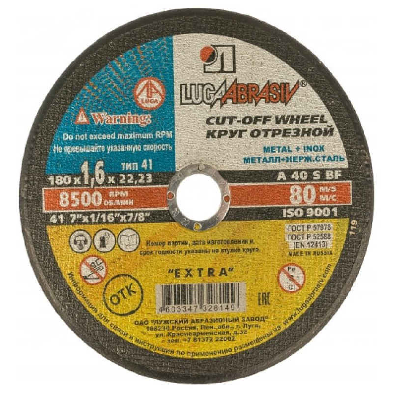 Диск отрезной по металлу Луга A 40 S BF 80 (14А БУ) ДМ 180-16