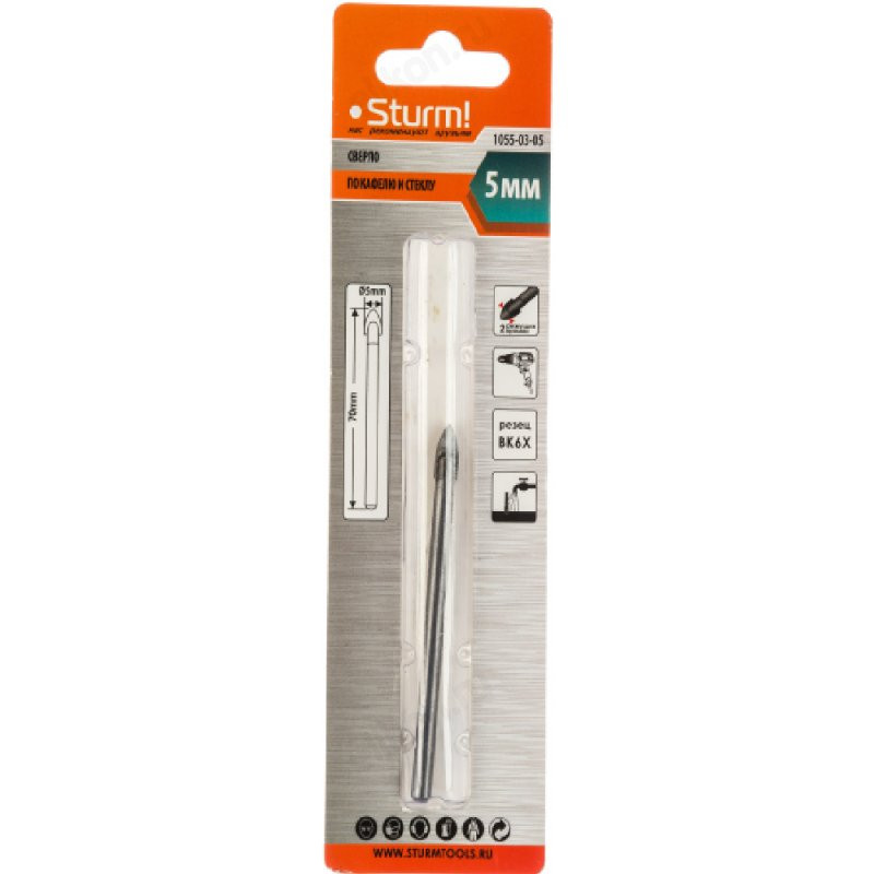 Сверло по стеклу Sturm! 1055-03-05
