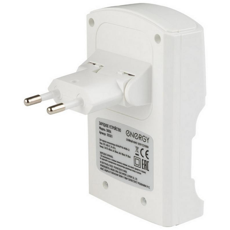 одновременная зарядка 2-х / 4-х аккумуляторов AA или AAA или 1-2 аккумулятора 9V, выход USB для подзарядки, складывающаяся вилка, индикация зарядки