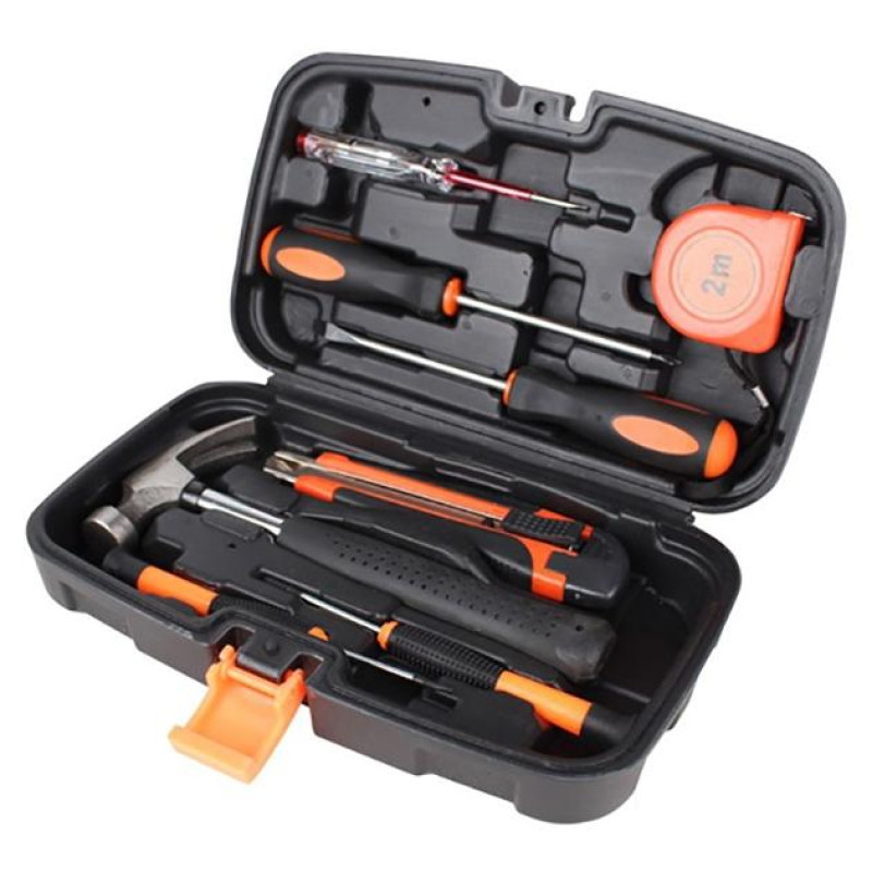 отвертка-тестер 1шт, отвертка PH2х10, отвертка SL6х10, прецизионная отвертка PH0/SL3, рулетка 2м, нож технический 18мм, молоток-гвоздодер, пластиковый кейс