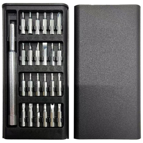 26пр, углеродистая сталь/пластик, магнитная ручка д/бит, биты PH000, PH00, PH0, PH1, PH2, SL4, SL1.5, SL2, SL3, SL4, T2, T3, T4, T5, T6, T8, T10, T15, H1.5, H2, Y0.6, pentalobe 0.8, 1.2, U2.6, TRIANGLE 2.3, пластиковый кейс