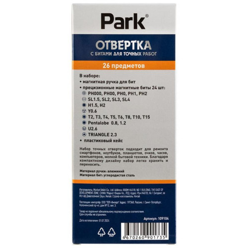 Отвертка с битами для точных работ , 26 предметов PARK ECOS 109104