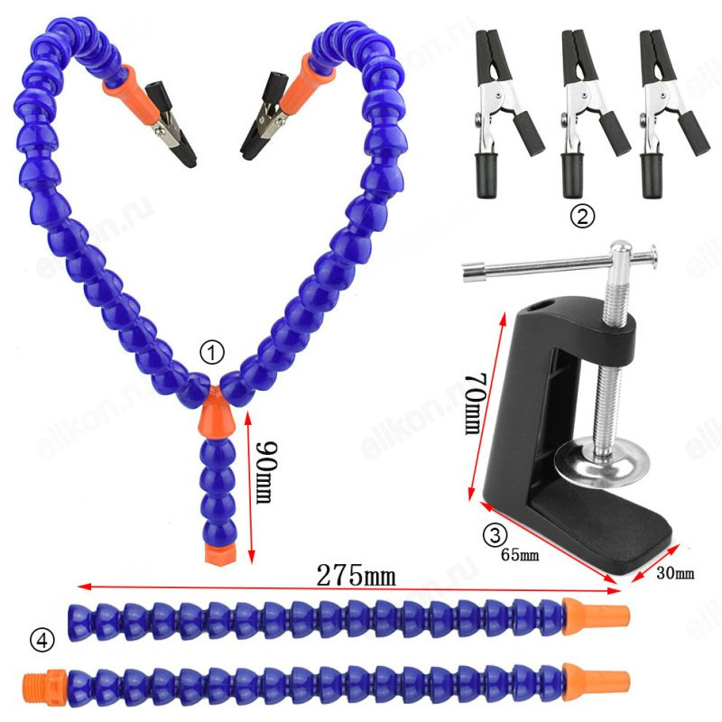 Комплектация: 3шт "руки", 3шт "крокодильчика", настольный зажим