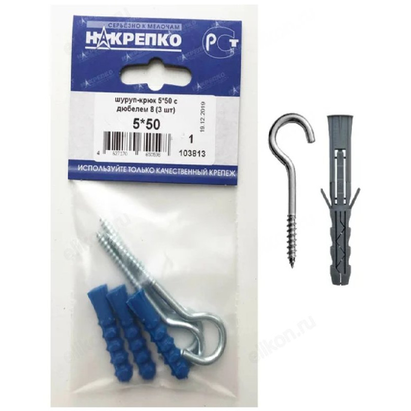 Шуруп-крюк 5*50 с дюбелем 8 " НАКРЕПКО" (3 шт) 103813