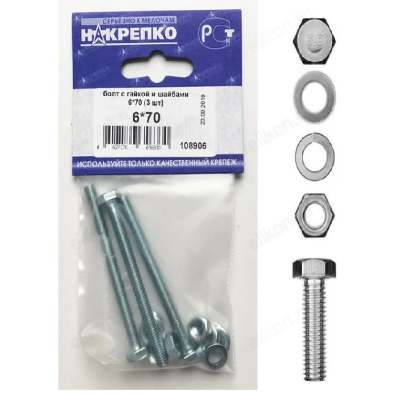 Болт с гайкой и шайбами 6*70 " НАКРЕПКО" (3 шт) 108906