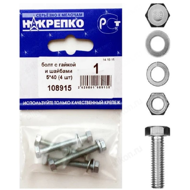 Болт с гайкой и шайбами 5*40 " НАКРЕПКО" (4 шт) 108915
