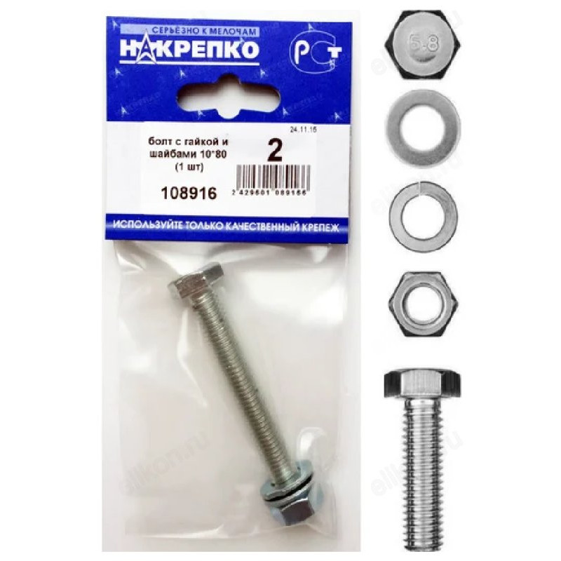 Болт с гайкой и шайбами 10*80 " НАКРЕПКО" (1 шт) 108916