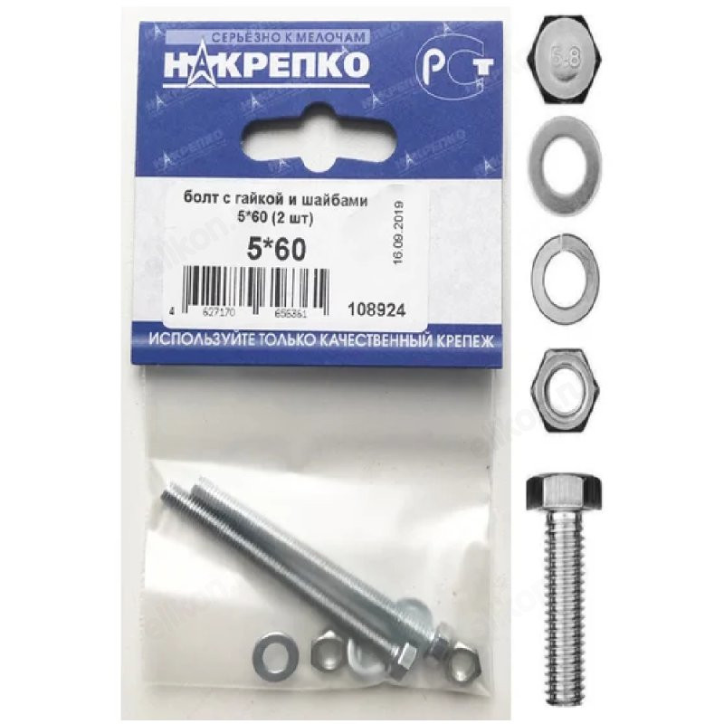 Болт с гайкой и шайбами 5*60 " НАКРЕПКО" (2 шт) 108924