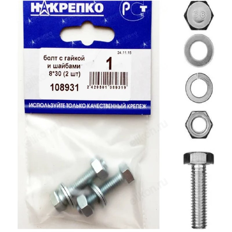 Болт с гайкой и шайбами 8*30 " НАКРЕПКО" (2 шт) 108931