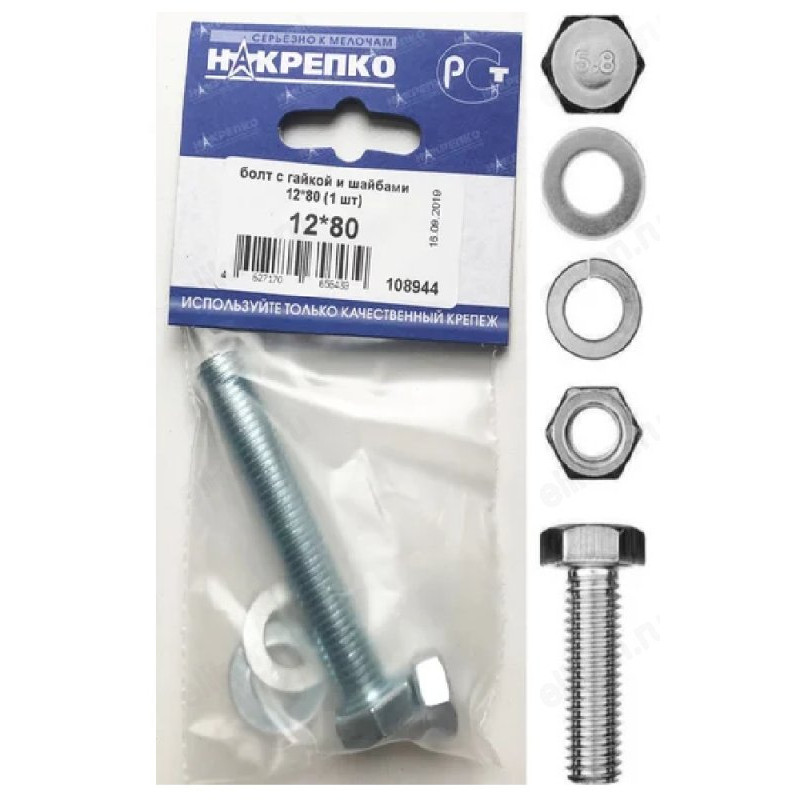Болт с гайкой и шайбами 12*80 " НАКРЕПКО" (1 шт) 108944