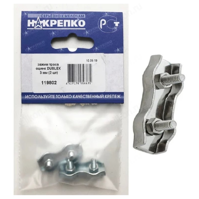 Зажим троса оцинк DUBLEX 3 мм " НАКРЕПКО" (2 шт) 119802