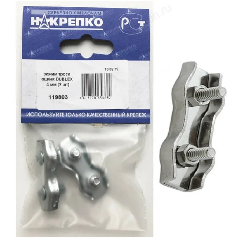Зажим троса оцинк DUBLEX 4 мм " НАКРЕПКО" (2 шт) 119803