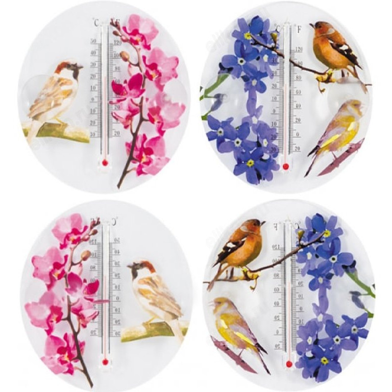 Уличный термометр Park "Цветы и птицы" предлагает два варианта дизайна (000152) и предназначен для измерения температуры на улице. Он изготовлен из прочного пластика и имеет присоски из ПВХ на левой и правой сторонах.