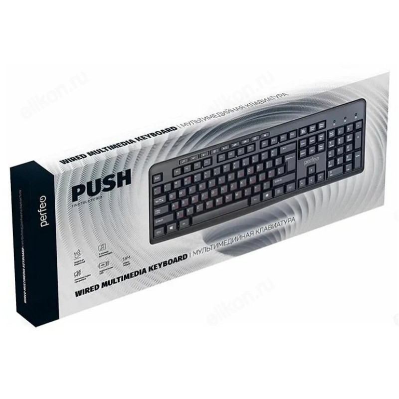 Простая и функциональная клавиатура Push от Perfeo подключаемая с помощью USB и предназначенные для решения повседневных задач дома или в офисе.