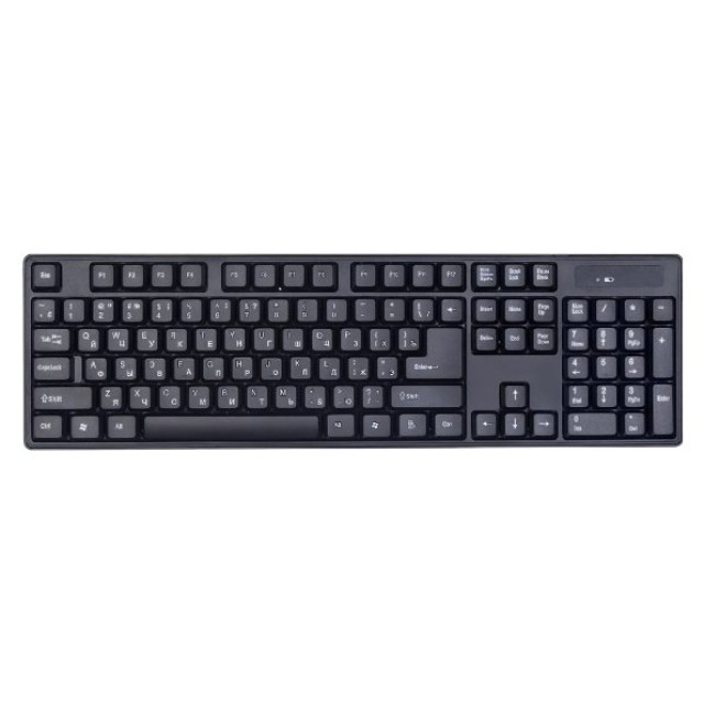 Беспроводной набор: клавиатура и мышь, работающие от одного USB-ресивера. Просто подключите USB-ресивер в USB-порт компьютера, установите в клавиатуру и в мышь батарейки, включите компьютер и работайте с удовольствием!
