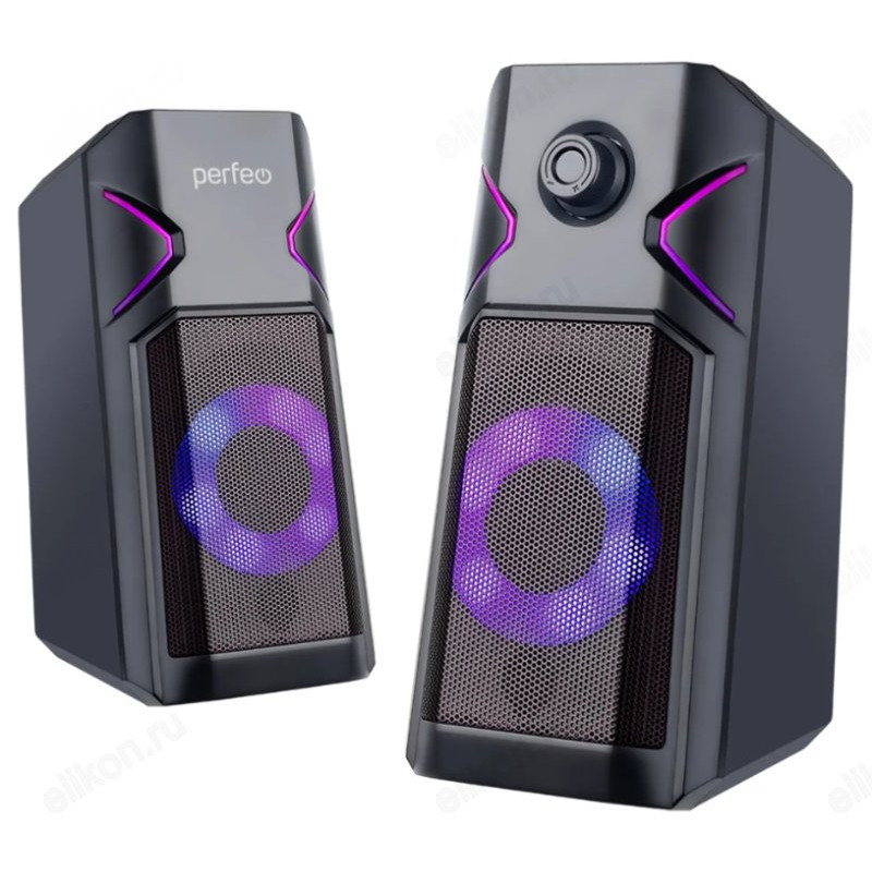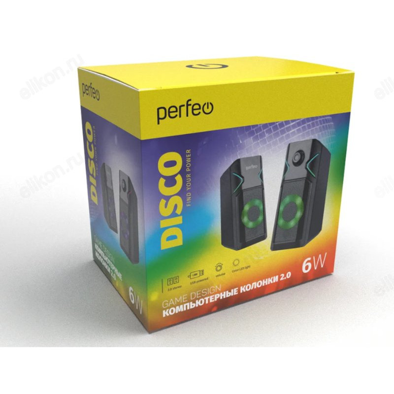 Акустика 2.0, 2х3 Вт, Perfeo "DISCO" USB, Game Design, RGB подсветка 7 режимов,черная