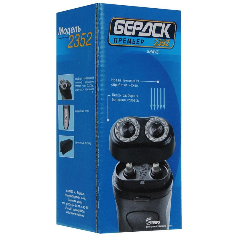 сеть, потребляемая мощность не более 10W, роторная, 2 бреющих головки, триммер для бороды и усов, сухое бритье