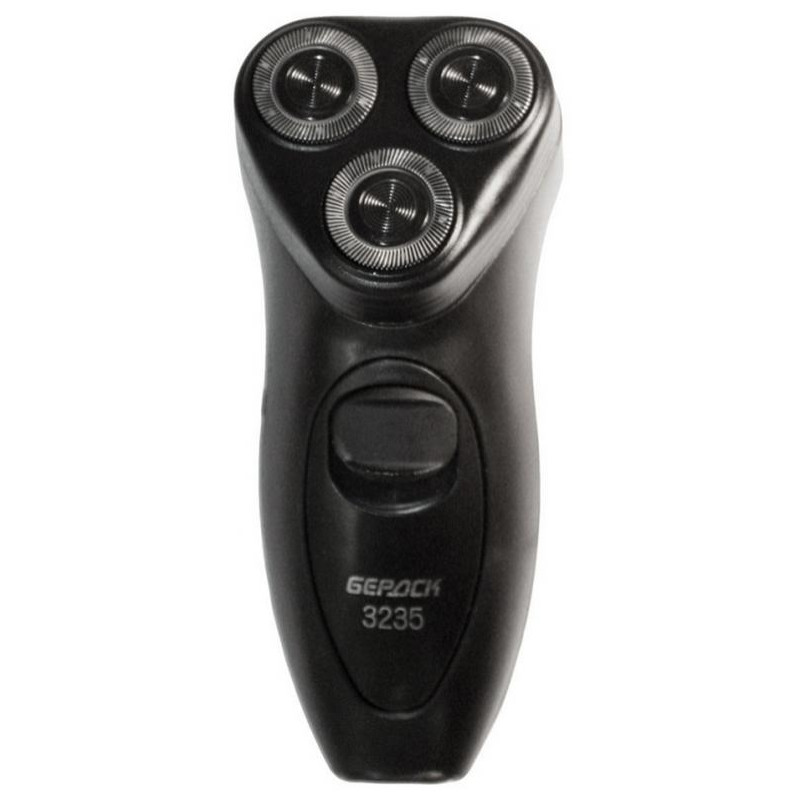 сеть, потребляемая мощность не более 6W, роторная, 3 бреющих головки, сухое бритье, пластиковый футляр