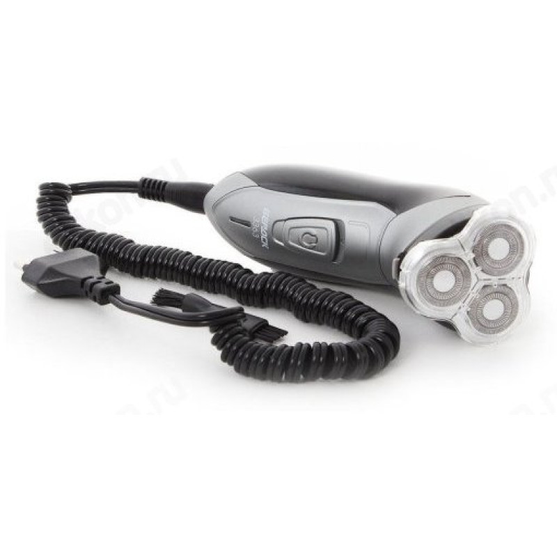 Современная роторная бритва мощностью 3Вт, двухдорожечные ножи , которые увеличивают интенсивность бритья за счет большей площади, выдвижной стригущий блок для подравнивания висков и усов, система объёмного бритья, более качественное бритье за счет повторения контура лица, плавающие бреющие головки, подвижный бреющий блок. Напряжение 100-240В.