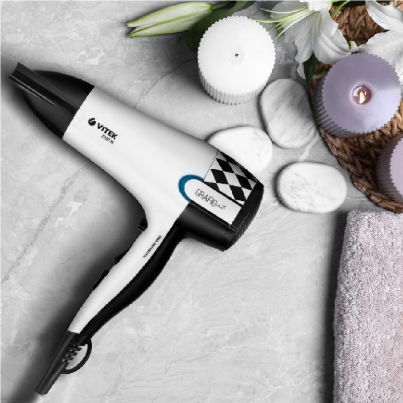 Фен Vitek-2299, белый/черный, 2200 Вт