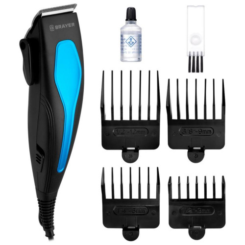 лезвия нерж.сталь, работа от сети, 4 насадки (3/6/9/12мм), регулировка длины, щеточка, смазочное масло