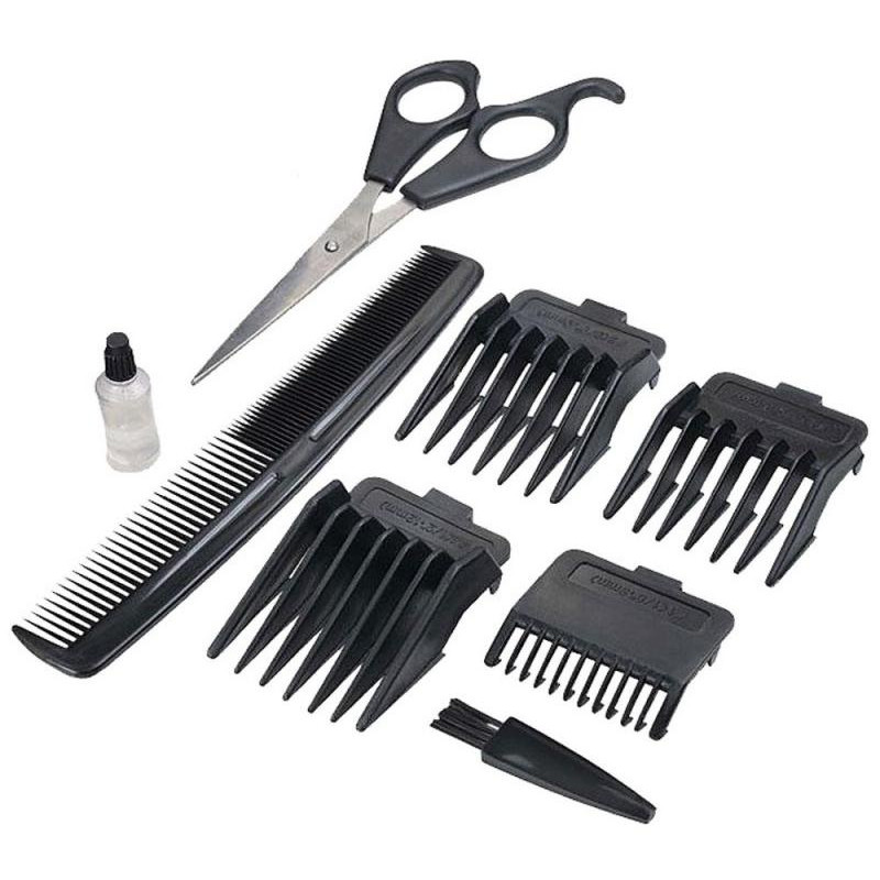 13Вт, лезвия из нержавеющей стали, 4 съёмных гребня (3,6,9,12 мм), работа от сети, щеточка