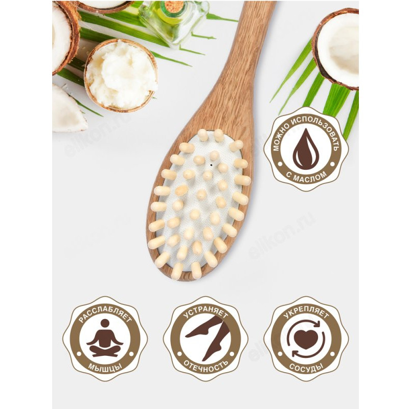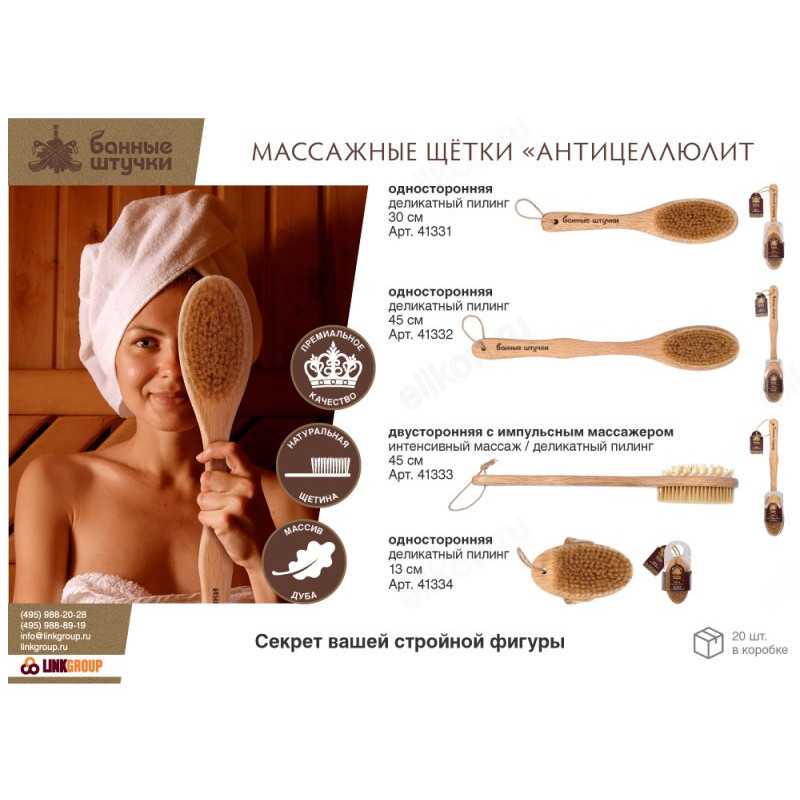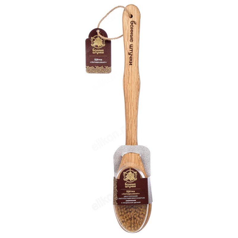 Щетка Антицеллюлит дерево двустронняя с импульсным массажером, 450 мм