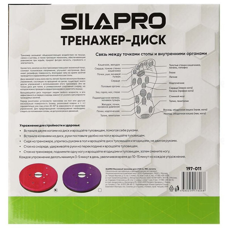 Массажный тренажер-диск SilaPro, D 25 см, ПВХ, магниты