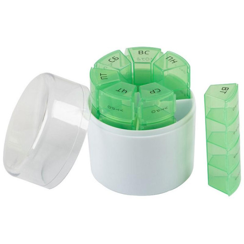 8.8х8.8х10см, цилиндр, 7 секций, по 4 приема (утро, обед, вечер, ночь), на 7 дней