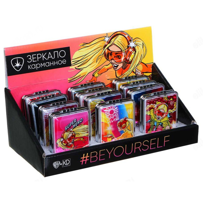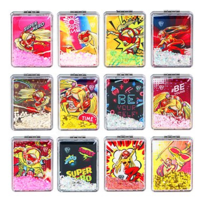 Зеркало карманное ЮниLook, пластик, стекло, 8х5,8см, 12 дизайнов