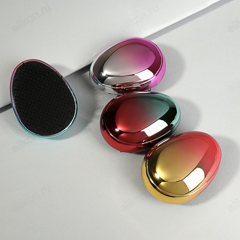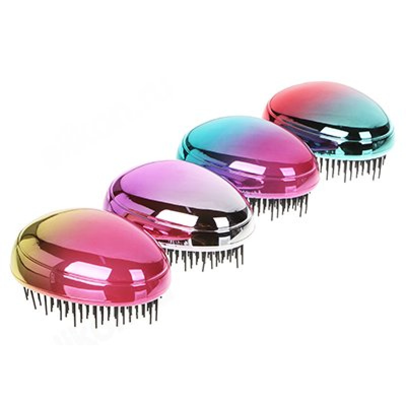 Яркий градиент и металлический блеск превращают расческу в модный и стильный аксессуар.