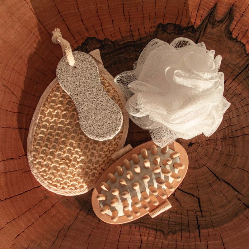 Любите ходить в баню, но не любите долгие сборы? Банный набор ЮL содержит в себе все необходимое для принятия ванны и похода в баню. Набор находится в прозрачной косметичке, что делает его прекрасным походным вариантом. В него входит мочалка шар, компактная овальная мочалка, пемза для ног и массажер. Все принадлежности компактные и поместятся в любую сумку.